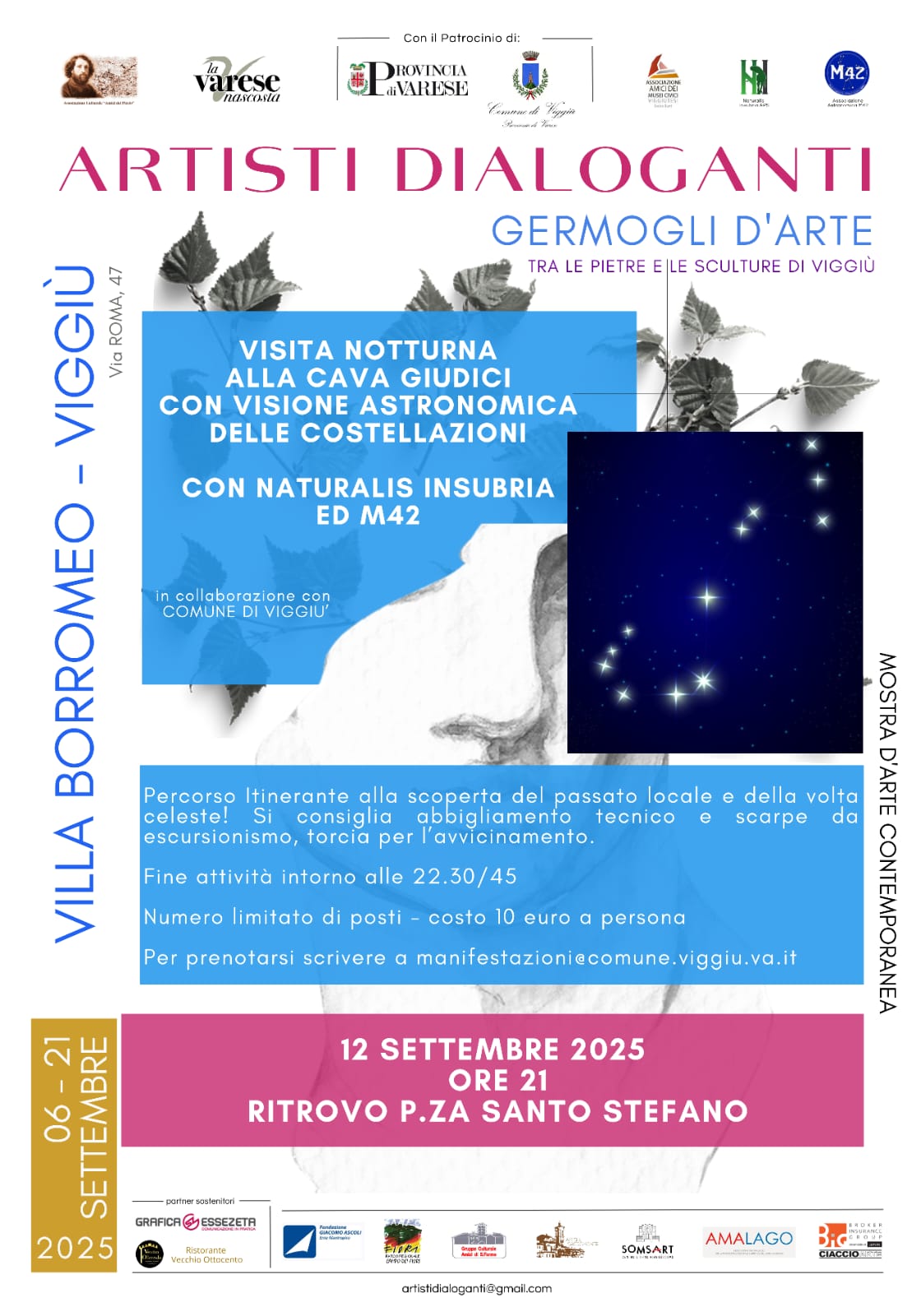 Artisti dialoganti. Germogli d'arte tra le pietre e le scultura di Viggiù Visita notturna alla cava Giudici, con visione astronomica delle costellazioni (con Naturali Insubria ed M42) Ritrovo p.zza Santo Stefano Invito |