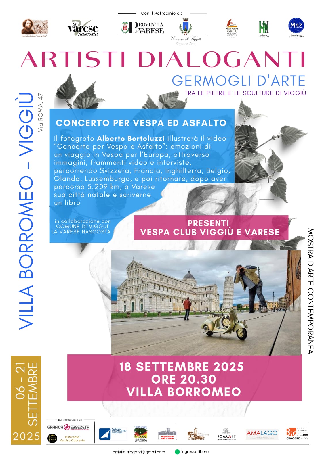 Artisti dialoganti. Germogli d'arte tra le pietre e le scultura di Viggiù Concerto per vespa e asfalto - Fotografo Alberto Bortoluzzi (Video - emozioni di un viaggio in Vespa per l’Europa) - Presenti Vespa Club Viggiù e Varese Invito |