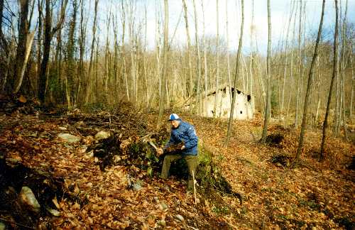da solo, davanti alle numerose sporgenze e rientranze di una ceppaia,